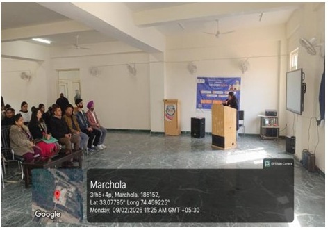 Government Degree College Sunderbani today organised a seminar on the Constitution of India under the aegis of Cultural Committee of the College to commemorate the 150th anniversary of Vande Mataram. The seminar was aimed at sensitizing students to the constitutional values, democratic ideals, and national ethos that form the foundation of the Indian Republic. The programme witnessed enthusiastic participation from students and faculty members. Dr. Shakoor Ahmed, faculty member of Political Science acted as the Resource Person who delivered an enlightening presentation supported by a comprehensive PowerPoint elaborating on the philosophy, fundamental rights, preamble, other salient features, and contemporary relevance of the Constitution of India. His scholarly exposition was highly appreciated by the audience. As part of the seminar proceedings, students were assessed for their academic engagement. Ms. Sohani Rajput of 4th Semester secured the First Position, Ms. Survi Sharma of 6th Semester bagged the Second Position, while Ms. Anshu Sharma of 4th Semester secured Third position. The achievers were felicitated with mementos along with certificates, while all participating students were awarded certificates in recognition of their active involvement. The programme concluded with a formal Vote of Thanks by Dr. Rakesh Kumar, Convener of the Seminar, who expressed sincere gratitude to the resource person, college administration, faculty members, students, and the organizing committee for their valuable cooperation. The seminar concluded on a patriotic note, reaffirming faith in the Constitution of India and the enduring spirit of Vande Mataram.